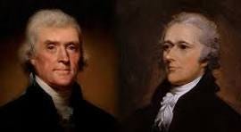 Jefferson and Hamilton face off. Theater-goers will recall from the play Hamilton the “cabinet battles” fought during the Washington administration between the Federalist Alexander Hamilton and the Republican (then Democratic Republican) Thomas Jefferson. [Watch the two debates here and here.]. These debates concerned Hamilton’s plan to assume the states’ war debts and establish a national bank, and Jefferson’s proposal to ally the US with France in its war with America’s principal trading and financial counterparty, England. The Hamilton-Jefferson debates reflected not only disagreements about the specifics of public policy but also two very different visions of the future development of America: one urban and commercial with a strong federal government allied with Britain (Hamilton) and the other rural and agrarian with a weak central government allied with France (Jefferson).